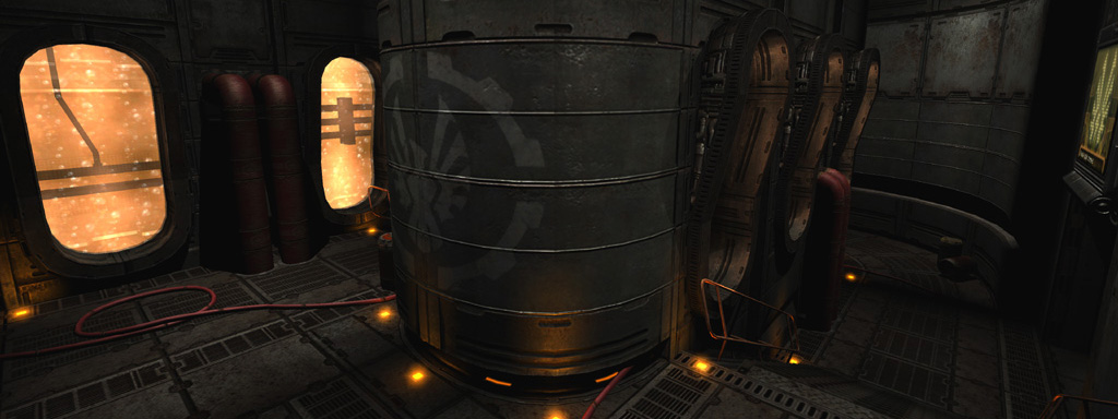 While this level stayed more intact than its elevated successor, the engine room at the center of this map was the subject of significant re-builds and re-designs before finally being left at a simple two-button "puzzle." The frequent revisions left the room a bit haphazard compared to its surroundings.