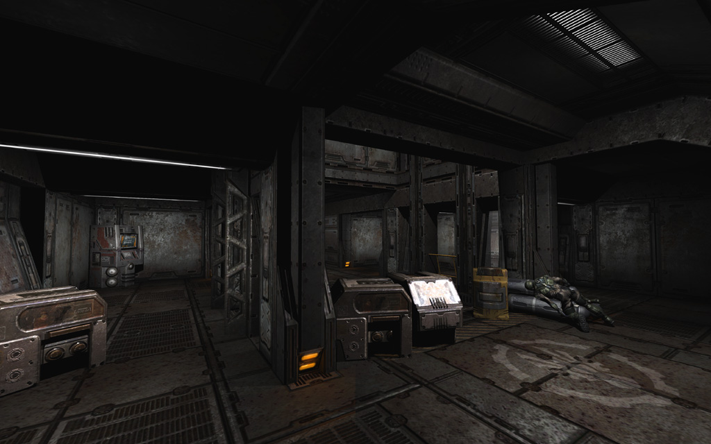 Quake 4's final act features an assault on three towers that must all be activated to open the final assault on the Makron. These towers were among the oldest levels in the game, and needed a focused effort from the entire design team to be brought up to final quality. My primary assignment—in addition to some support and encounter design work on the second Data Processing level—was a final lighting pass on Data Storage Security.