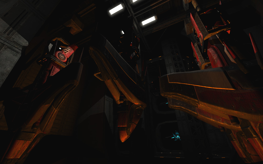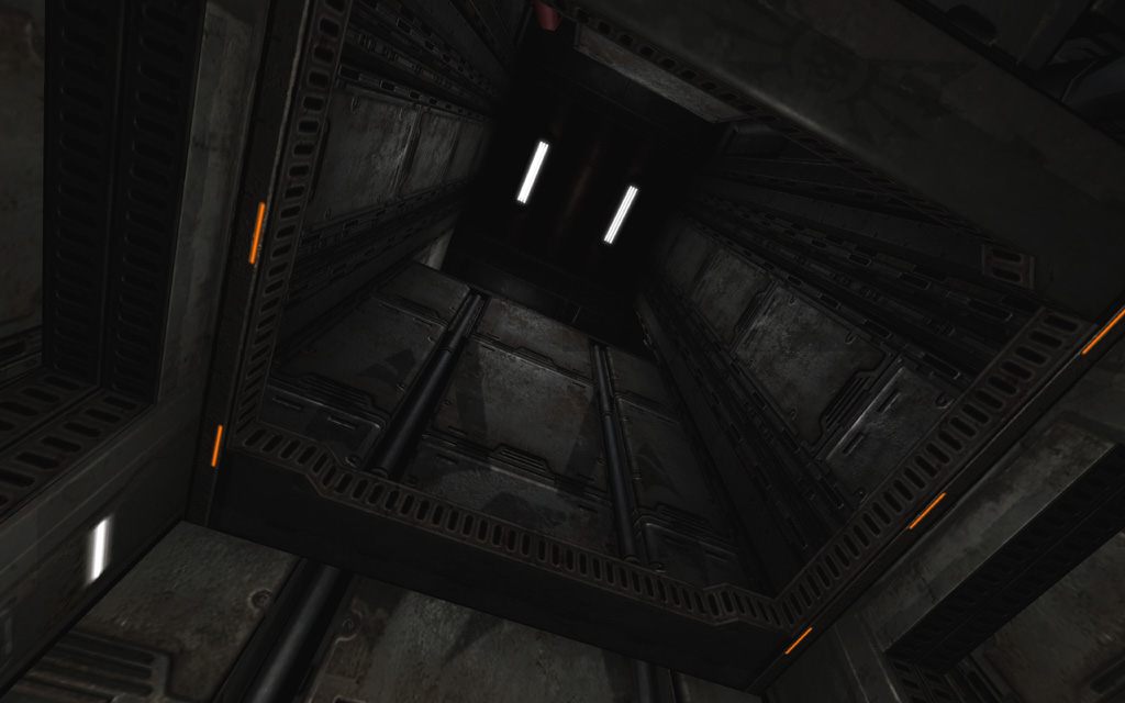 The original version of this level was considerably larger, with an additional floor above the current playable space. This area and its story objective were both trimmed out, leaving the level's primary objective at the destruction of the two hangar bays. Fortunately this was a fairly clean cut, and I was also able to easily re-purpose the elevator into the level's exit, which then connected back to the center of Hangar Perimeter's entrance room at the start of MCC Landing Site.