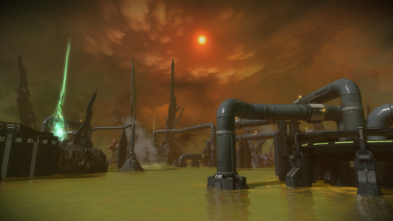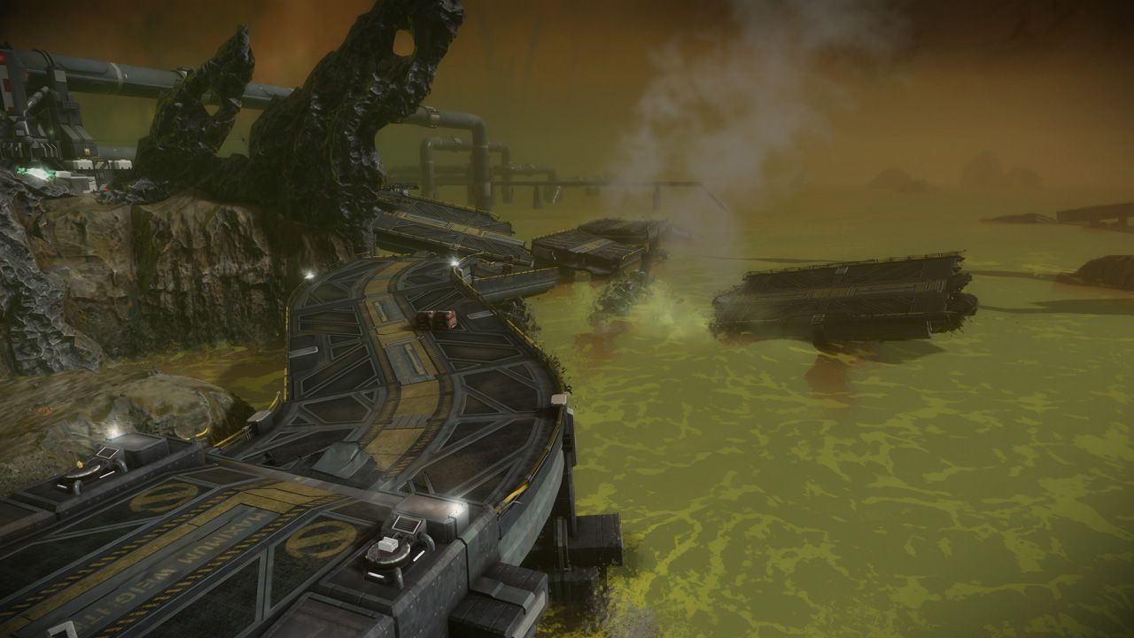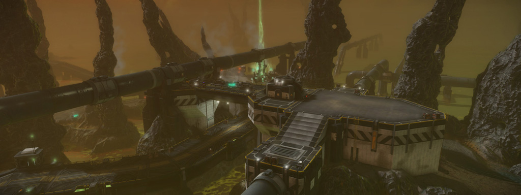 Origin is the first map we developed in the new swamp-themed Cypress environment, released in August 2012 with Starhawk 1.03. Where Starhawk's original levels focused on rift mining and the conflict between Rifter and Outcast, the Cypress theme centers on abandoned and overgrown facilities where research teams first discovered the potential of harnessing rift energy.