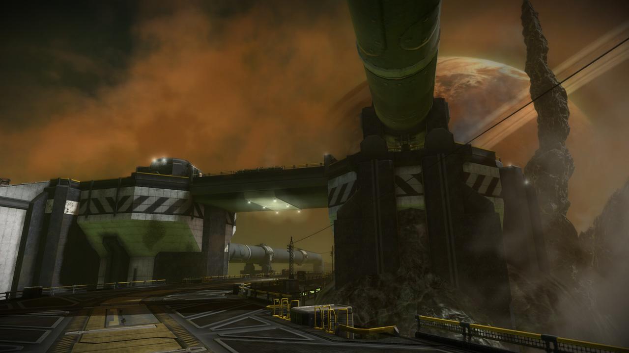 Junction was the final "extra-small" level developed for Starhawk 1.04. I had originally wanted to try and create a much more structural Acid Sea-styled Deathmatch map, but by the time we got around to making this level, no additional content support was available and I had to build the level with existing content, including terrain islands used in the campaign mission "The Pit."