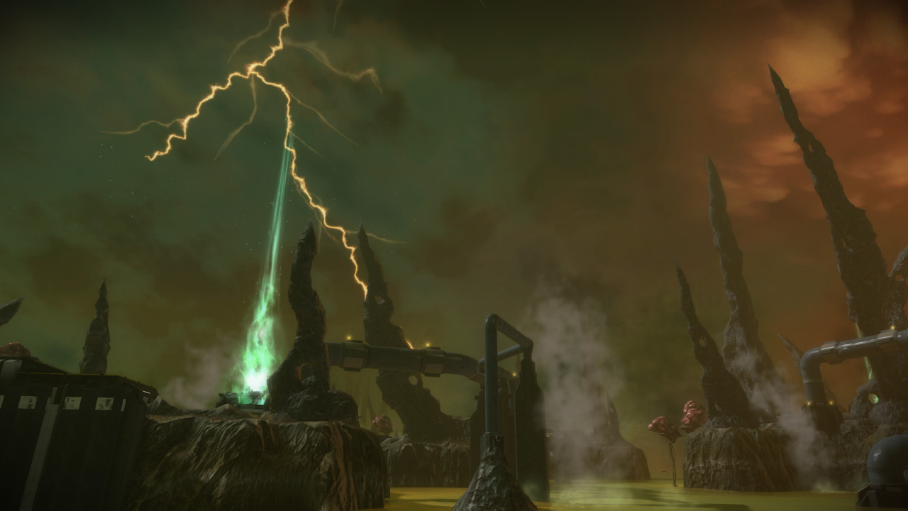 Breaker's layout is divided into three different regions: low-lying open water with loosely scattered spires, clusters of overlapping pipeline, and elevated islands with towering spires. In the absence of a unique set piece, this gave the level some much needed visual distinction between areas and helped keep the flight space varied and interesting, which also shines in the new Gatekeeper mode.