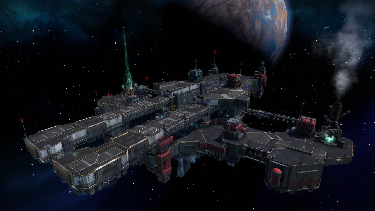I first started poking at Relay during some downtime shortly after Starhawk launched; the space environment was easy to get up and running in new layouts due to its extremely modular nature. I started with the core of the level and the twin arms extending out over the midground (invoking some of Apogee's stylings) mixed with a dash of a tuning fork and some inspiration from Homeworld's Bentusi ships.