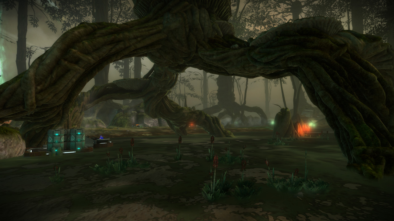 Glade reprises the Cypress theme in "extra-small" form. The layout is extremely simple, with bases arranged on a back ridge ramping down to a low-lying midground cluttered with tree roots and low cover. Glade steals the mantle of fastest Starhawk level from Outlands and also served as the most frequent proving ground of the Grizzly Rig DLC vehicle during its development.