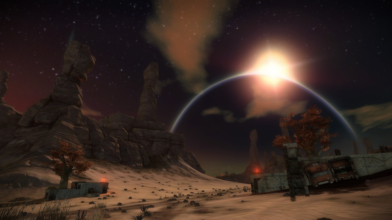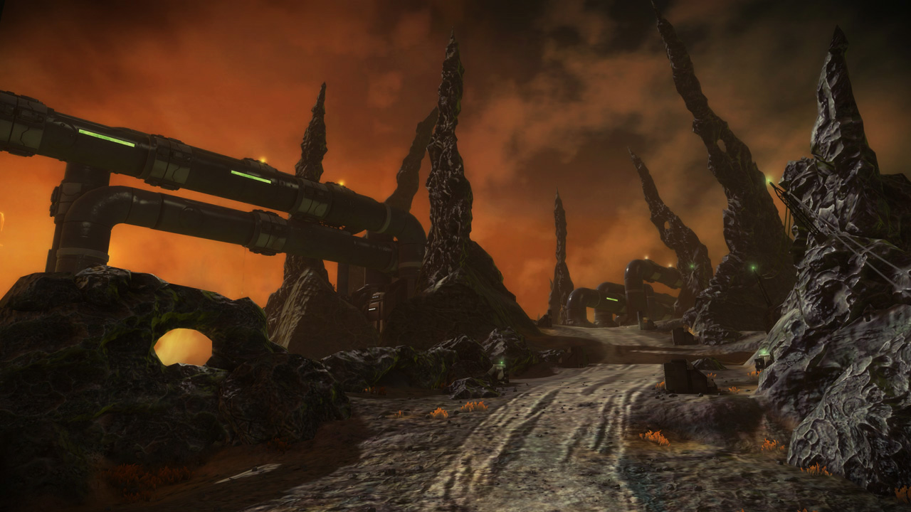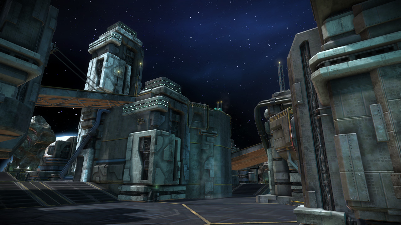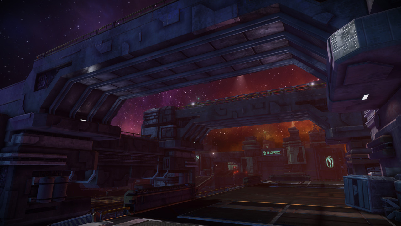 The eclipse sky featured in this level was originally developed for Basin, but we felt that introducing our new level in a dark and brownish lighting scheme wouldn't do us any favors, especially against darker levels like Conduit and Orbital. We swapped the two skies a couple weeks before submitting our Public Beta build, and the change ended up being permanent.