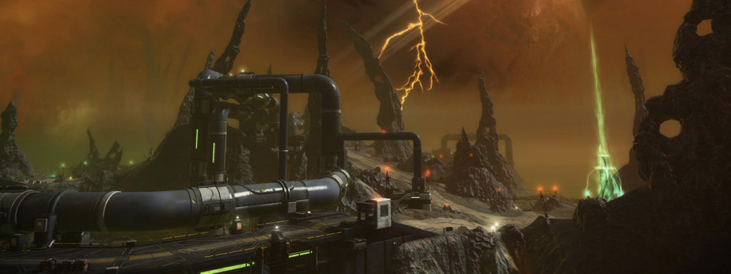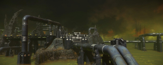 Conduit, set in the "Acid Sea" environment of Dust's moon Scourge, was the general public's first glimpse of Starhawk's multiplayer. The level debuted to the press at our unveil event at the Alamo Drafthouse Ritz in May 2011 and then to the general public at E3 2011. Conduit was also included in both phases of the Starhawk beta that kicked off in late 2011.