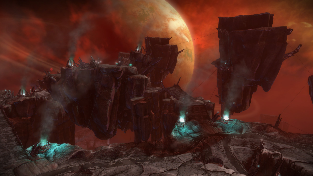 The Sever, or "shattered moon" environment, was the most challenging Starhawk environment to bring to life. In Starhawk's lore, this moon of Dust was torn apart by rift energy, and serves as the lair of the Outlaw and Outcast war bands in the campaign.