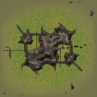 The Canyon levels suffer from a bit of a size and scale dilemma; while this is the "smaller" layout, it actually takes up nearly as much surface area as Narrows. One change I considered during development would have stripped the side paths and re-routed the overlook road to cross the bottom of the basin. This would have created an overlapping figure-eight layout and emphasized a key Build and Battle choke point in the middle, but time was tight and the layout was playing quite well already.