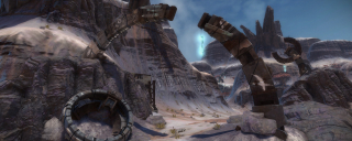 Fracture is the larger of the two Sever levels in Starhawk, and the most massive level in the game. Perhaps too massive, in fact; while the raw terrain size isn't much larger than Basin, the effective playable space is much larger, then spread further apart by bridges. This results in very low player density on all but the most packed servers.